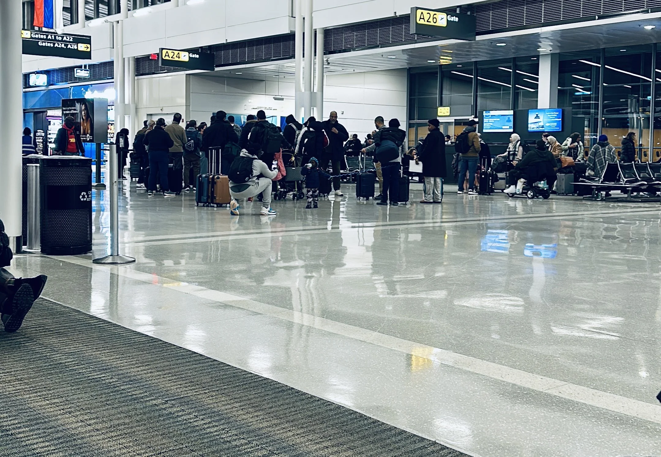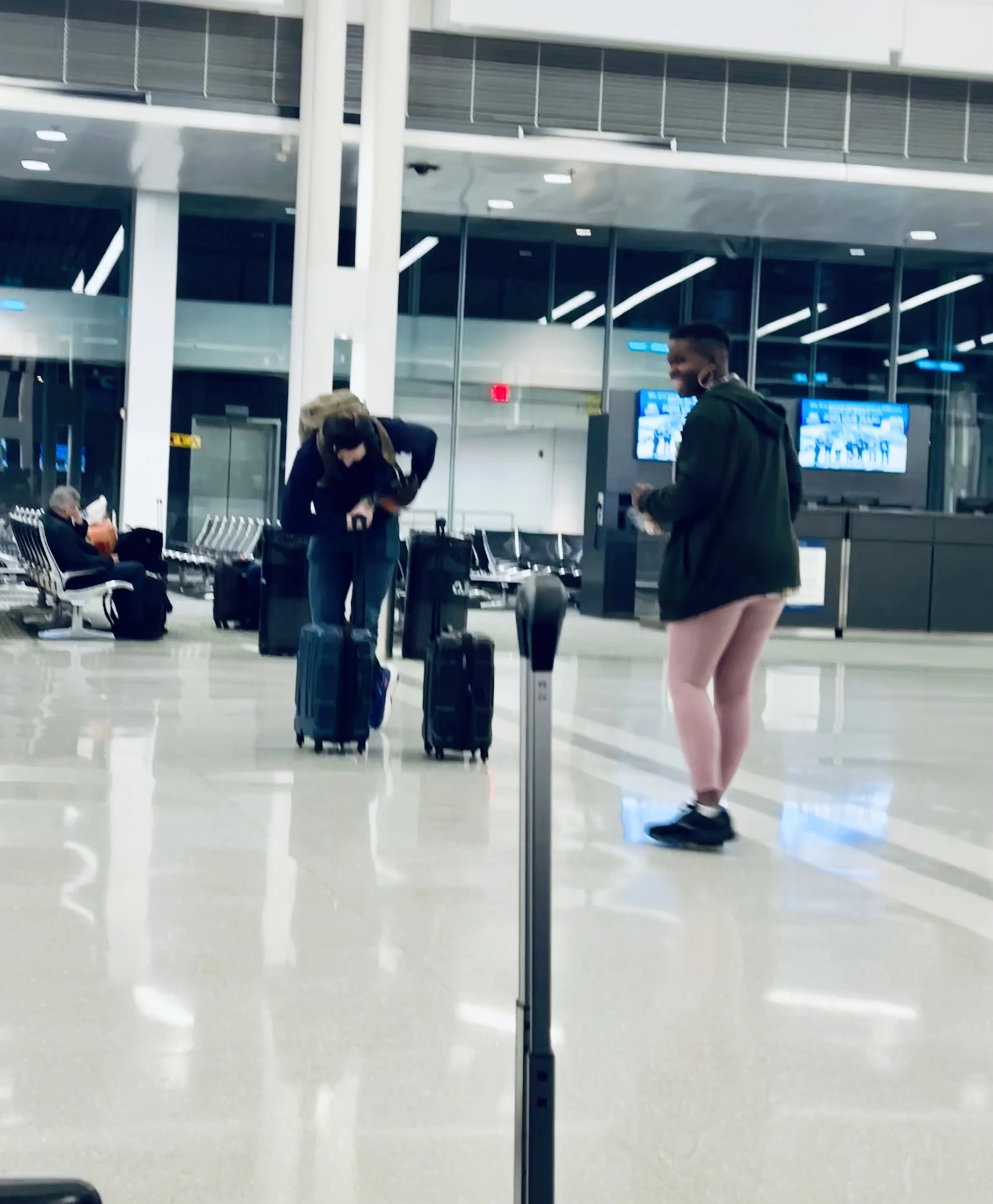 The boarding process began and was nearly finished. With just minutes to spare, they came running! Nate took a bow, proud to have hauled both carry-ons while running the half-mile between their arriving and departing gate.